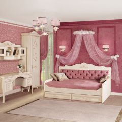 Мебель для детской комнаты «Алиса» – мебель для девочек и девушек, стилизована под Прованс, который поддержан светлым декором, цветочными рисунками и патиной на фасадах. При создании детской использовались приемы итальянского декорирования мебели. Мотивы классической росписи в сочетании с любимым мотивом детского рисунка – бабочки и цветы – создают ощущение юности и нежности. Использование декоративных элементов – корон и карнизов в наборе мебели не перегружают интерьер детской комнаты и при этом создают ощущение интерьера маленькой принцессы. Изящные ручки под золото со вставками молочно-белого цвета идеально сочетаются с кремово-белым декором и золотистой палитрой рисунков вензелей. При всей внешней легкости и утонченности мебель весьма практична в использовании, благодаря надежной фурнитуре «Hettich». Еще одним плюсом детской «Алиса» является большое количество различных модулей, позволяющих собрать комплект для любой комнаты.