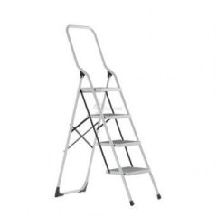 Стремянка ST14 стальная 4 ступени, белая с высокой ручкой